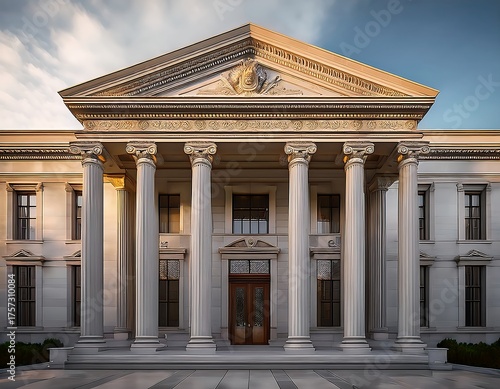 Obraz premium historic bank structure featuring a grand entrance and huge pillars,...