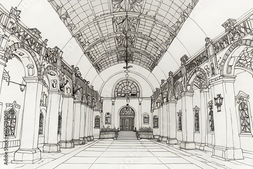 © babangpedia, Naklejka premium Historic Black and White Photograph of an Elegant Architectural Building