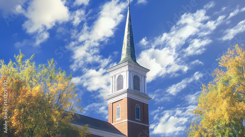 © Thiago, Fototapeta premium Historic boston old north church steeple, daylight exterior photography. Darklight Spire. Illustration