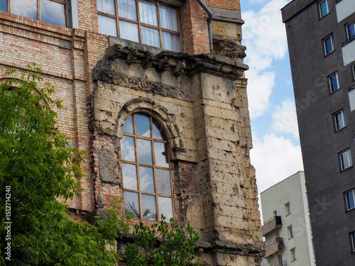 © Олексій Остистий, Fototapeta premium Historic brick industrial building facade with arched windows showcasing heritage architecture in urban environment