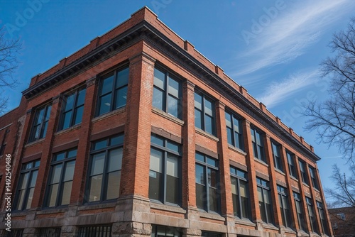 Fototapeta premium Historic Brick Office Building Under Clear Blue Sky