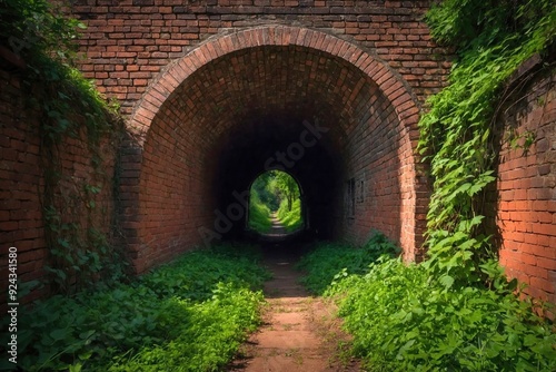 © AungMyintMyat, Fototapeta premium Historic Brick Railway Tunnel with a Rustic Charm
