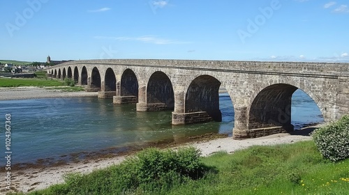 Fototapeta premium Historic Bridge Spanning a Wide River Landscape