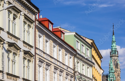 Fototapeta premium Historic buildings and tower of the city hall in Liberec, Czech Republic