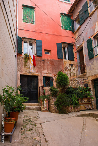 © dragoncello, Naklejka premium Historic buildings in the old centre of the medieval coastal town of Rovinj in Istria, Croatia