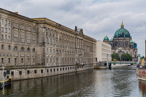 Naklejka premium Historic buildings on the spree riverbank in the Center of Berlin, Germany