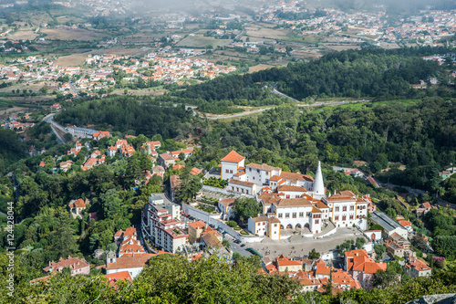 Obraz premium Historic Centre of Sintra, Portugal, with Sintra National Palace, as Seen from the Moors Castle