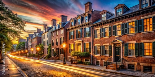 © Arnada, Fototapeta premium Historic Charlestown Row Houses, Boston, Massachusetts - Long Exposure Photography