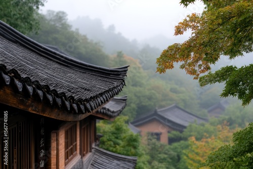 © Dennis, Obraz premium Historic Chinese Building with Curved Rooftops and Decorative Tilework