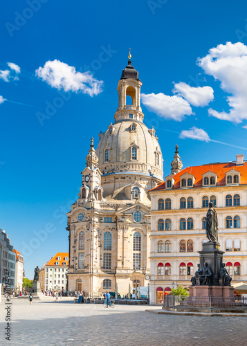 Naklejka premium Historic Church of our Lady or Frauenkirche on the Neumarkt square in Dresden, Germany