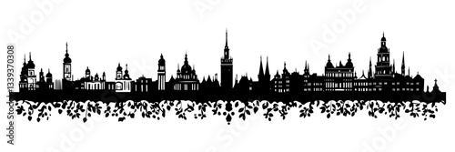 Obraz premium historic city skyline silhouette black and white architectural illustration