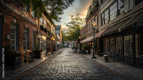 Fototapeta premium Historic City Street: A charming historic city street with cobblestone...
