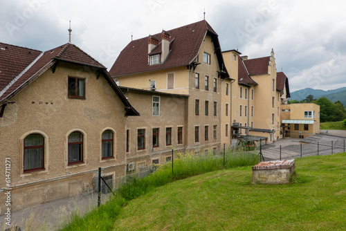 Fototapeta premium Historic clinic with elements of art nouveau, art déco and expressionism . Historische Klinik mit Elementen des Jugenstils, des Art déco und Expressionismus . LKH Hörgas . Landeskrankenhaus Hörgas