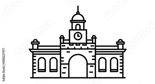 Obraz premium Historic Clock Tower Building Outline Icon