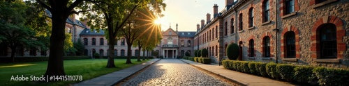 © nittiya, Fototapeta premium Historic Dublin campus cobblestone streets, Trinity College architecture , landmark, street