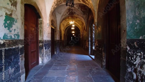 © Marsa, Fototapeta premium Historic hallway interior with dim light