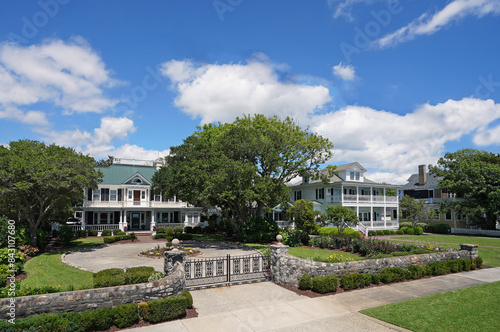© zimmytws, Obraz premium Historic homes along Front St in downtown Beaufort North Carolina