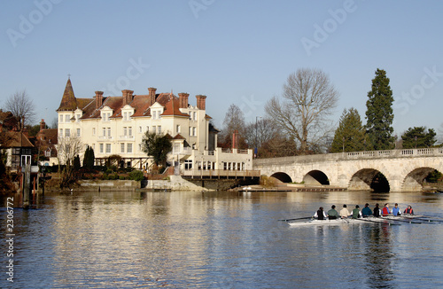 © Chris Lofty, Fototapeta premium historic hotel and river bridge