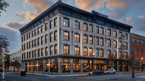 © Salman, Fototapeta premium historic hotel upgraded with energy-efficient windows that mimic the original 19th-century design, providing modern comfort without compromising historical integrity
