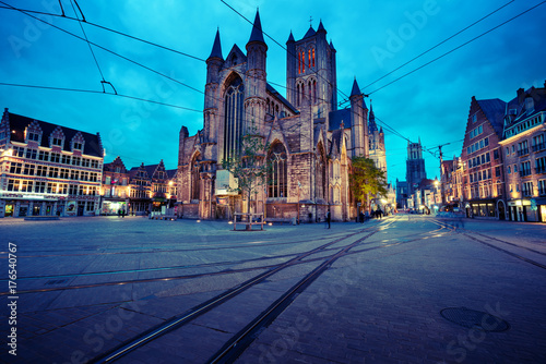 © Iakov Kalinin, Fototapeta premium Historic houses in Ghent, Belgium