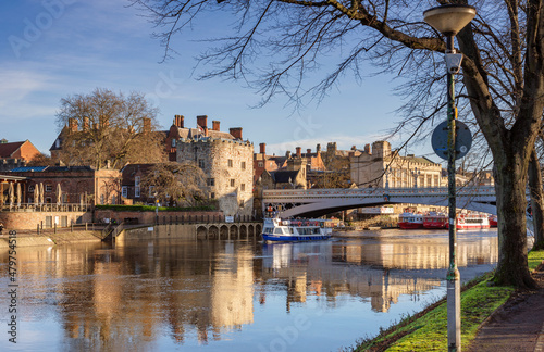 © Jack Cousin, Obraz premium Historic iron bridge and tour boat.