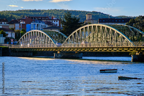 © Mikel, Fototapeta premium Historic iron bridge spanning over calm river