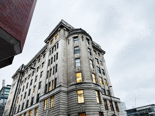 Fototapeta premium Historic Manchester building Blackfriars House rises among surrounding...