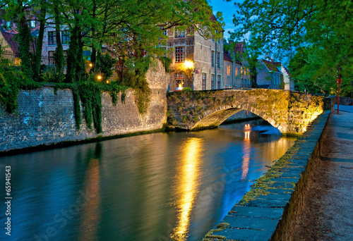 © Horváth Botond, Naklejka premium Historic medieval buildings along a canal in Bruges, Belgium