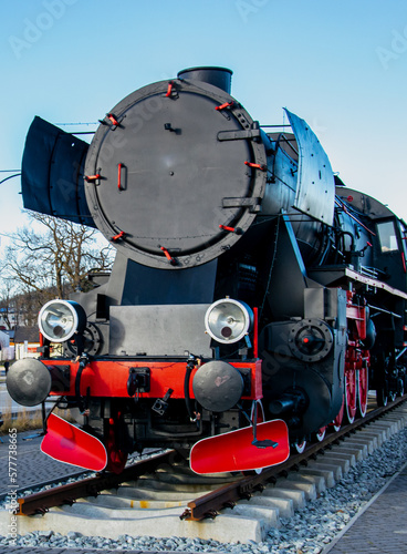 Fototapeta premium Historic old locomotive on the tracks