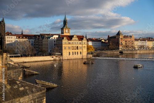 Obraz premium Historic Prague scenery along the Vltava River