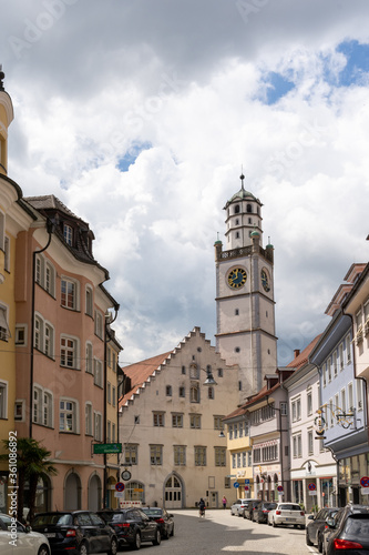 Naklejka premium historic Ravensburg with the Blaserturm tower and the Waagsaal building