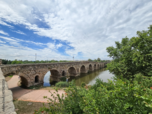 © javiindy, Fototapeta premium Historic roman bridge over the Guadiana river in Merida, Spain