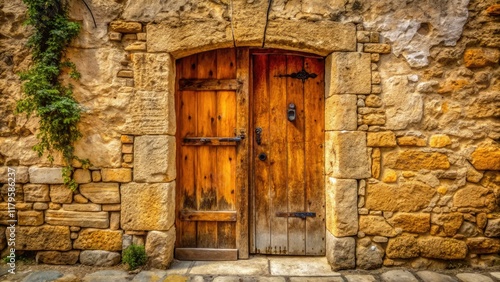 Obraz premium Historic Safed, Israel. Timeworn wooden door, a photographic glimpse into...