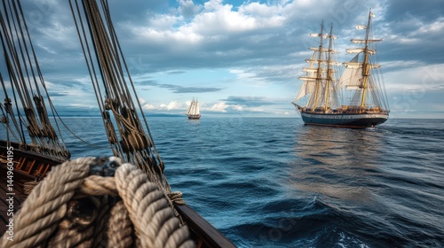 © Anak, Obraz premium Historic sailing ships on a vast expanse of water.
