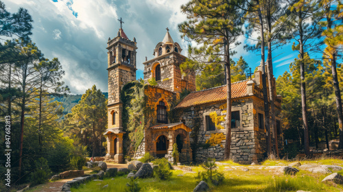 © standret, Naklejka premium Historic Santa Maria de el Paular in lush forest setting