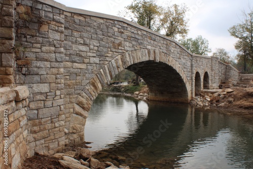 © munirahsamsudin, Fototapeta premium Historic Stone Arch Bridge Spanning Serene Waterway Landscape