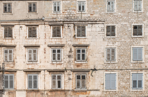 © Sergey, Fototapeta premium Historic stone buildings with window shutters