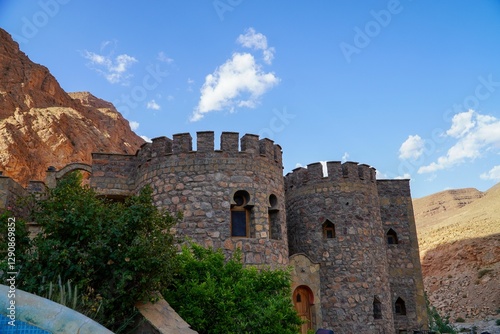 Fototapeta premium Historic stone castle with round towers.
