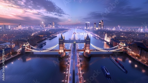 © wicha, Naklejka premium historic Tower Bridge spanning the River Thames, with its iconic twin towers and a glass floor walkway offering breathtaking views of the city skyline