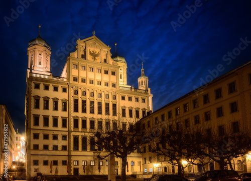 © manfredxy, Fototapeta premium Historic town hall of Augsburg at night