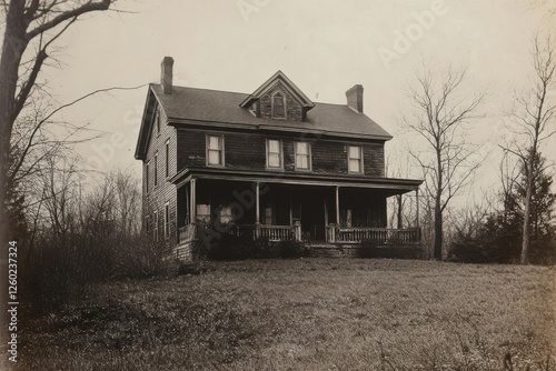 © AuraArt, Obraz premium Historic two-story farmhouse in the countryside.