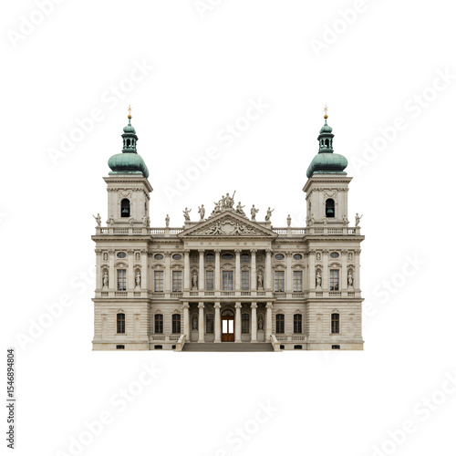 Obraz premium Historic White Cathedral with Towers and Architectural Details on White
