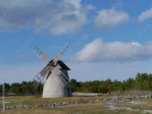 © Frouwina Harmanna va, Naklejka premium Historic wind mill on the Swedish island faroe in Sweden