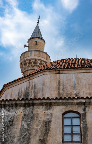 Fototapeta premium historical hasanaga mosque. tile dome and minaret. Adana, Turkey.