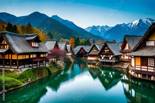 © sarmad, Fototapeta premium Historical village of Shirakawa-go. Shirakawa-go is one of Japan's UNESCO World Heritage Sites located in Gifu Prefecture, Japan.