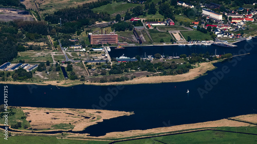 Obraz premium Historisch Technisches Museum, Peenemuende, Usedom, Mecklenburg-Vorpommern, Deutschland, Luftaufnahme