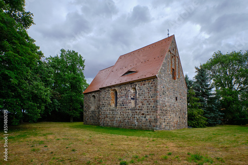 © ebenart, Fototapeta premium Historische Dorfkirche Reichenow am Radwanderweg "Tour Brandenburg"