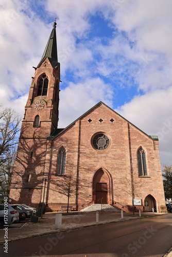 Fototapeta premium Historische Kirche im Zentrum der Stadt St. Georgen im Schwarzwald