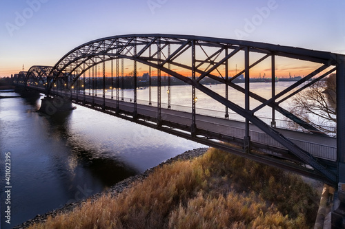 Naklejka premium Historische Stahlgitter Träger Brücke Hamburg Harburg entzerrt