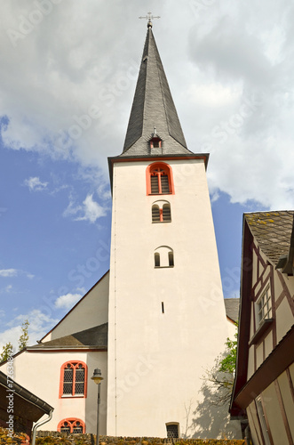 © ah_fotobox, Fototapeta premium Historischer Kirchturm in Traben-Trarbach, Mosel Deutschland